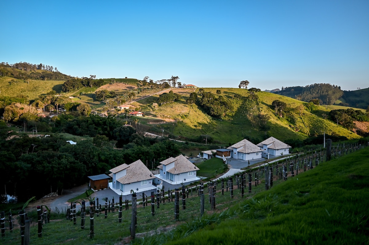 Spectacular chalet located on top of a beautiful mountain between Bragança Paulista and Tuiuti. Market and nearby restaurants with delivery. Lake for fishing. Organic orchard and vegetable garden, heated pool without chlorine, farm animals, soccer field, barbecue, fireplace. Exclusive room for home office with great Wi-Fi. Pets are very welcome. Bed and bath linens are provided. Loud noise is not allowed. The property has one more house also rented for the season.
