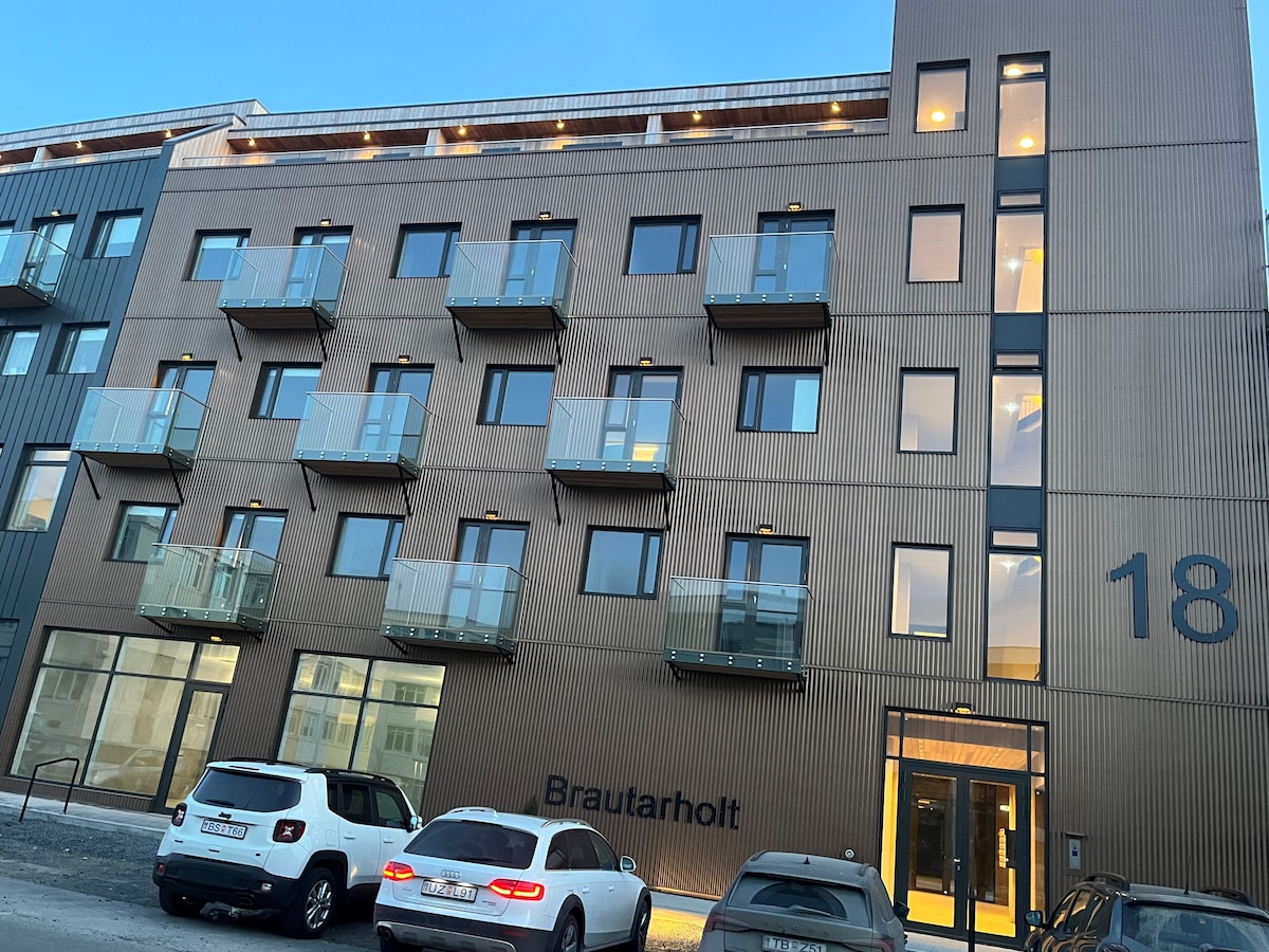 ICELAND SJF APARTMENTS - Your Downtown Reykjavík Retreat Experience the best of Reykjavík in our luxury 60 sqm apartment on 5th floor newly constructed in 2022 and located in the heart of the city. Revel in breathtaking ocean and mountain views right from our dual balconies. Wake up to the iconic sight of Hallgrímskirkja Church and the historic Höfði house all while being just steps away from Reykjavík's most coveted eateries, bars, There are free parking lots with apartments in downtown