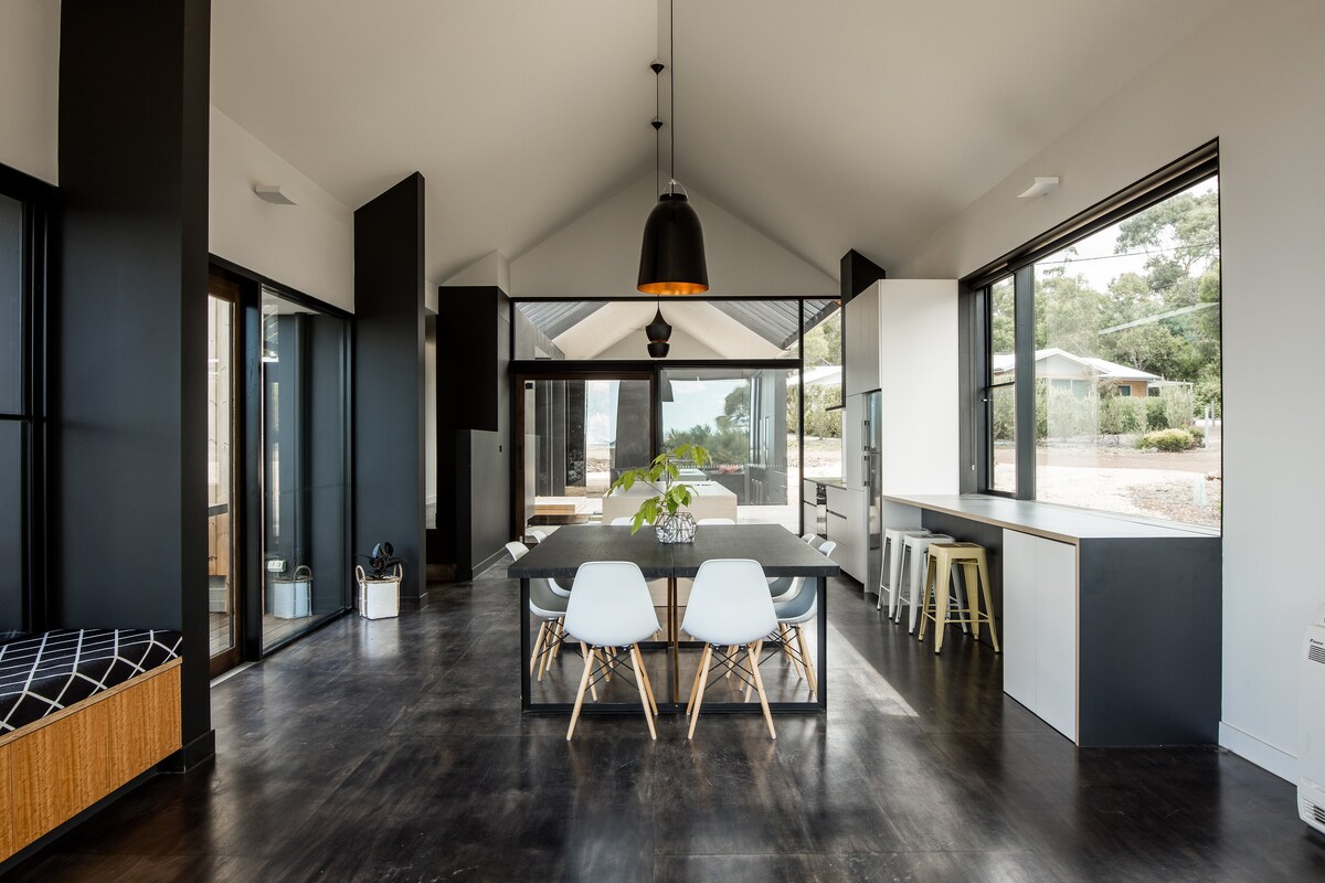 Tawny is a custom built Tiny House, whose name is inspired by the elusive Tawny Frogmouth who live in the area. With luxury bedding and facilities, an outdoor bath and stunning location overlooking Spring Bay, Tawny offers a tranquil, intimate space to relax and unwind from the everyday. A short drive to a choice of amazing beaches and short walks; Maria Island and local eateries. You can relax in the boat shed by day and in the evening, gaze at the stars by the warmth of the fire pit.