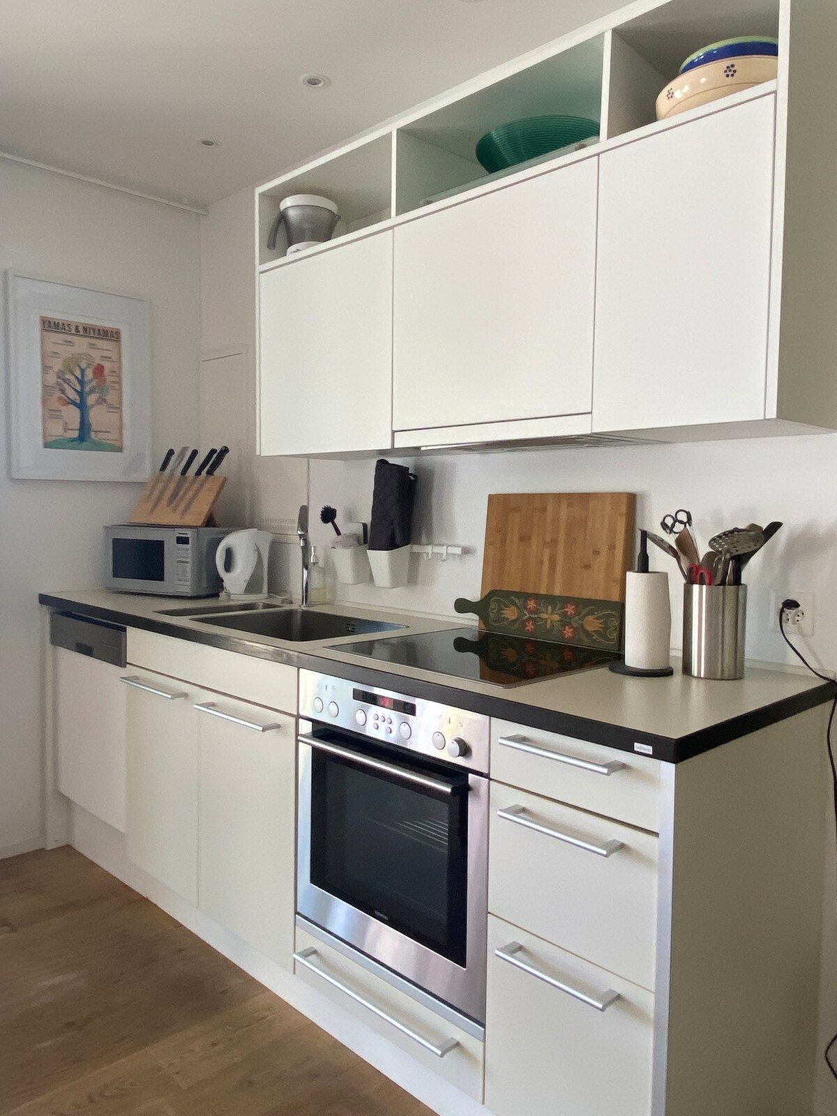 Das Interieur des Tiny House ist modern, stilvoll und insbesondere mit viel Liebe zum Detail von mir gestaltet worden. Es verfügt über eine gut ausgestattete Küche mit einem Backofen, 4 Gas-Herdplatten, Spüle, Spülmaschine eine Senseo Kaffeemaschine sowie einem Toaster, Wasserkocher, ausreichend Geschirr und Kochutensilien. Ein Grill steht ebenfalls für Sie bereit. Das Badezimmer ist umweltgerecht ausgestattet mit einer Trockentrenntoilette.
