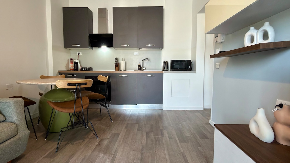 Perfect for families, newly built condominium accommodation, consisting of two bedrooms, living room-kitchen and bathroom. No architectural barrier, high-quality bathroom fixtures, automated bedroom bed, home automation with Google home (lights on - shutters down - electric current auto-restart, music etc). Kitchen with induction stove, coffee machine, kettle and microwave.