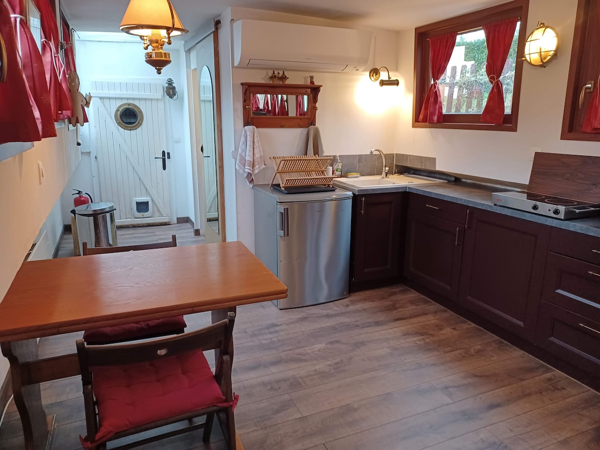 Come and stay in a comfortable 1902 barge, completely renovated. You have a large 160 cm bed and an extra bed for the 3rd person. The barbecue is installed, enjoy the terrace! Pets are welcome free of charge. Watch your favorite series on the Internet TV, chill, relax. You have 2 city bikes at your disposal for walking or shopping! Close to the Bay of Somme, its seals and its wonders, the Ark of Noah awaits you.