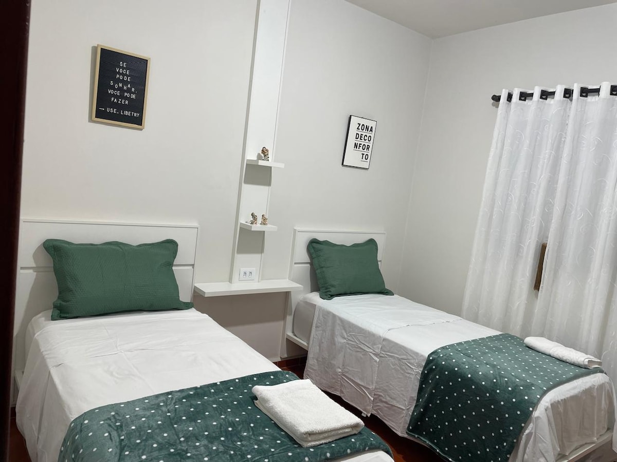 Viva a melhor experiência em Ourinhos! Casa moderna, arejada e acolhedora, ideal para relaxar, pegar um cinema, trabalhar ou fazer uma pausa. Uma sala de Cinema disponível 📽️🍿(Projetor 4k) Conta com Wi-Fi 600 Mbps, Smart TV, ar-condicionado, cama queen com pillow top, enxoval higienizado e aroma Maldivas. Espaço pet friendly, garagem privativa, área externa com ducha e churrasqueira. Perto do shopping, centro e mercado. Vizinhança segura e tranquila.