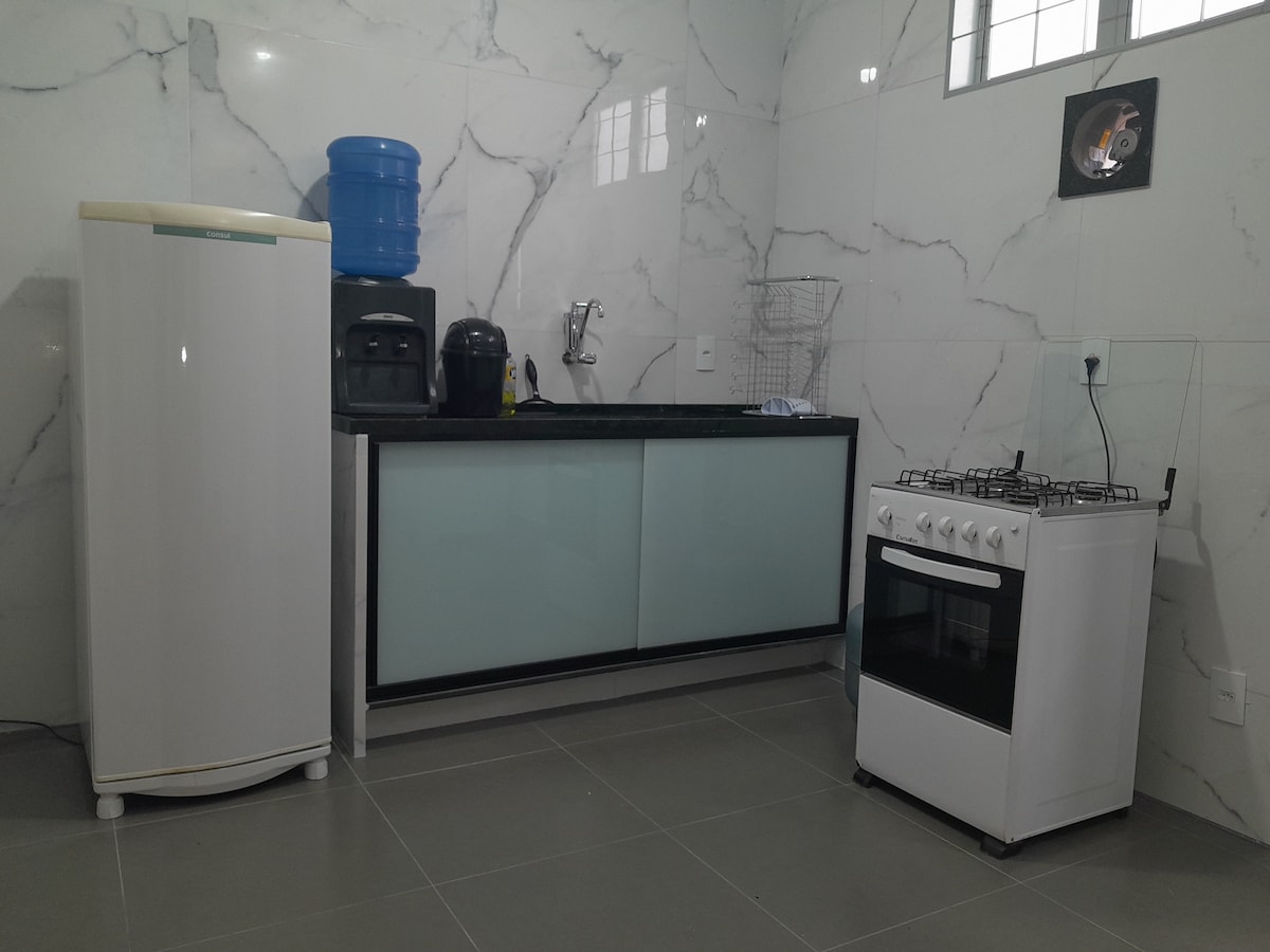 NON-SMOKING apartment. Fully furnished and decorated apartment, featuring a 40” smart TV and internet, three bedrooms with fans and box beds, two of which are air-conditioned, bed linens (bottom sheet, top sheet, pillowcases and pillows *we do not have a blanket), face and bath towels, ironing board and iron are available, as well as a hairdryer. Easy access, near the Anhanguera highway. A convenience store on the same street, supermarkets and pharmacies are very close.