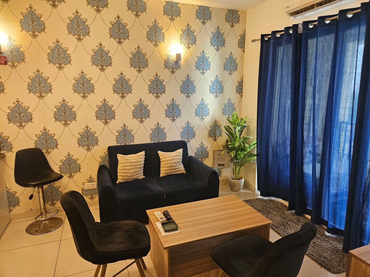 Fully furnished service apartment in Sector 143 Noida in Gated society Near by Advant tower and near by Sector 143 Metro station. Near DLF Tech Park and Oxygen buisness park Sector 144 Neat and clean place to stay Suits : Bachelor's , couples and Families for short and long stays. It has double bed, Sofa sitting area, Study table, Smart Led Tv and fully equipped Kitchen and attach bathroom and balcony.