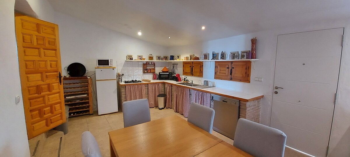 A refuge house with a private pool, located next to the hiking trails and climbing points of Cabezó de Or and Cuevas de Canelobre. You can enjoy tranquility, nature and panoramic views of the sea and mountains at the same time. Ideal for a weekend of sports or relaxation. Ideal place for barbecuing in a private setting. Just 12-15 km from Campello beach and San Juan Alicante. The house is located within our property's estate.