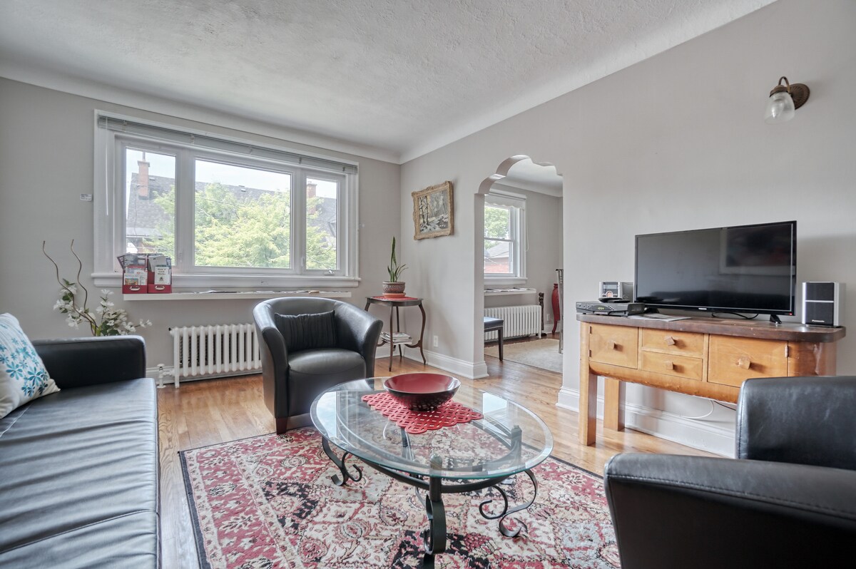 Welcome to the cozy comforts & character of a century-old house with a shared main entrance & private entrance to your top floor which includes a queen bed and windows everywhere! Fully equipped kitchen, and well furnished dining-living room with leather sofa. A home in Ottawa, close to everything: Byward Market, Parliament, Museums, Canal, Foreign Affairs & more... Welcome to skiers & cyclists as we are also cyclists & skiers! For longer stays, consider: https://www.airbnb.ca/rooms/19889581