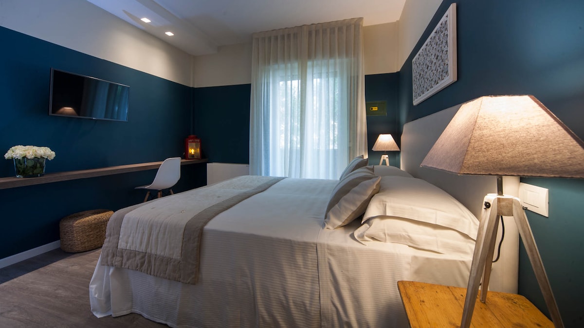 Created (like other apartments) after the 2025 renovation of the penthouse floor of the Hotel Paris Resort, it enjoys a great brightness and a pleasant panoramic view of the accessible pool area (1000 square meters) and the town. Combining luxury and comfort, it is spread over 33-37 square meters and externally has a beautiful terrace of 12-15 square meters. A true Aparthotel in the center of Bellaria in a quiet and green area, a few minutes' walk from the sea, the pedestrian area and the markets.