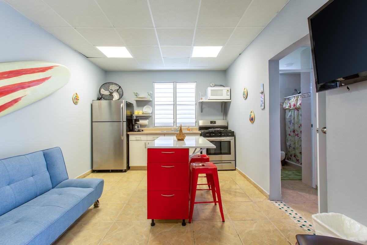 New A/C unit ! Bright, colorful, guesthouse villa designed for two guest only/1bed+1sofa bed. Quiet, local neighborhood - 10 minute walk to the happening restaurant and bar scene of Puntas and some of Rincón's best beaches for both swimming, surfing and snorkeling: Sandy Beach, Parking Lots, Pools , and others ( Puntas have steep hills if you are in good shape is an easy walk otherwise a car will be best !). Only 10 minute drive to town square , 5 min to Calipso , Maria’s & Domes beach .