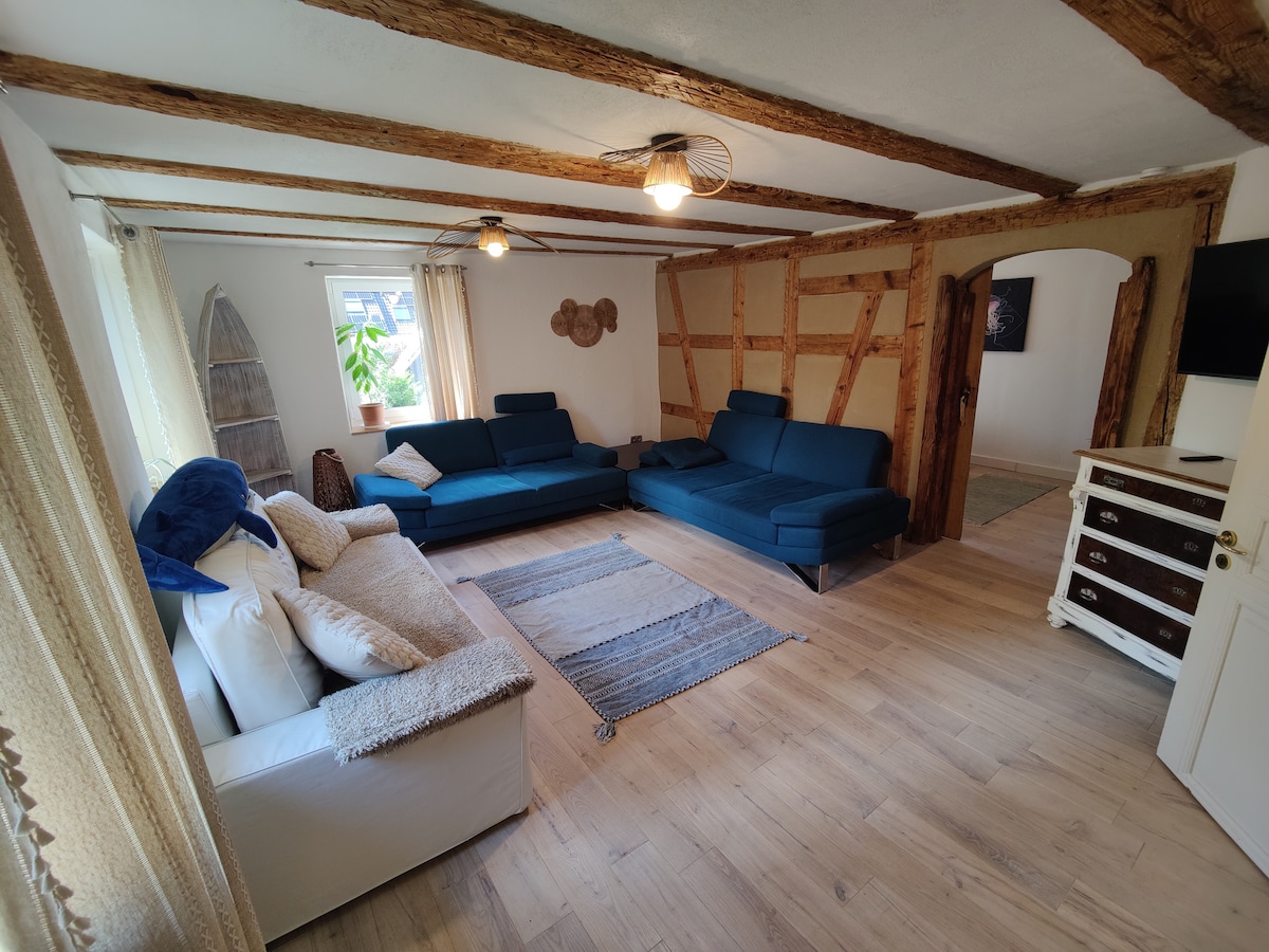 Liebe Gäste, herzlich willkommen in unserem stilgerecht renovierten Fachwerkhaus aus dem Jahre 1850. Wir möchten Ihnen Wohnen in besonderer Atmosphäre bieten: Sichtfachwerk, teils freigelegtes Gemäuer und Naturlehmdecken treffen auf Designerstühle und -lampen. Klare Linien in der Einrichtung, auf organische Strukturen des Hauses. Üppiges Jelängerjelieber, eine heimische Kletterpflanze, rankt um das mit Stauden umsäumte Haus. Rund um das Haus befinden sich zahlreiche, kostenlose Parkplätze.