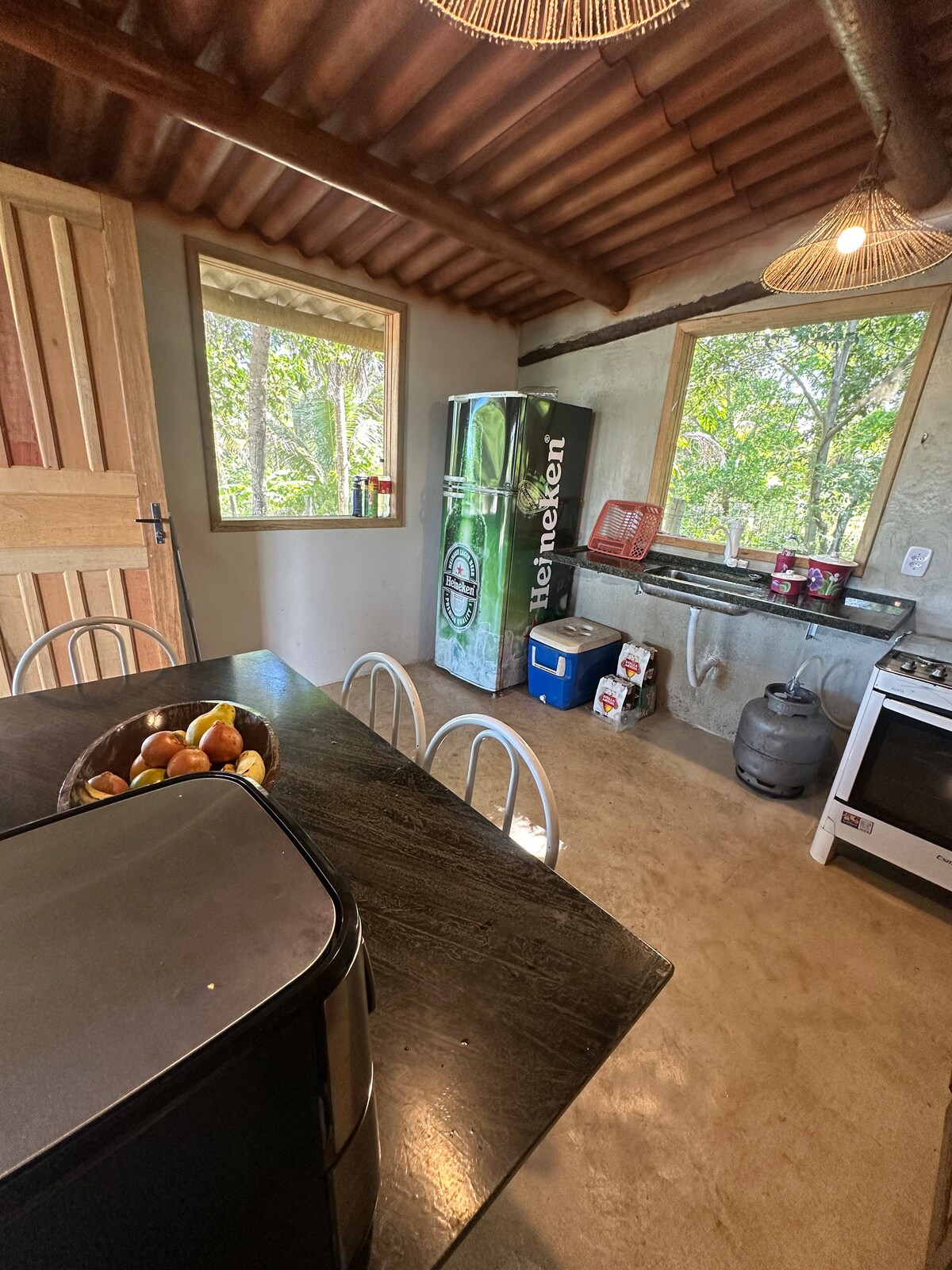 Relaxe com sua família no Chalé Paraíso, um refúgio tranquilo em Corumbau cercado pela natureza. O espaço possui quintal amplo com árvores frutíferas como coco e araçá, perfeito para crianças brincarem e para momentos especiais em família. A área externa tem uma linda vista para o verde, ideal para descansar e aproveitar a paz do lugar. Próximo a mercados, padaria e outros comércios locais. Wi-Fi, brinquedos infantis, toalhas e lençóis disponíveis para sua comodidade. 🌴