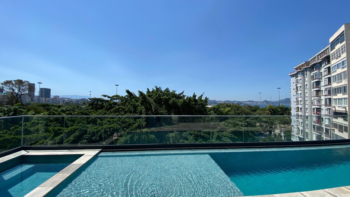 🌿 Cozy studio in Glória 🌿 Our studio is located on the charming Rua do Russel, a traditional address in Glória, in a modern building with a swimming pool and various amenities! 📍 Privileged location, between the South Zone and Downtown! 3-minute walk to Glória subway station, close to pharmacies, markets, cafes and restaurants. Ideal for couples looking for a romantic corner, solo travelers who want comfort and practicality, and tourists who want a good location in the city. @gloria.artstudio