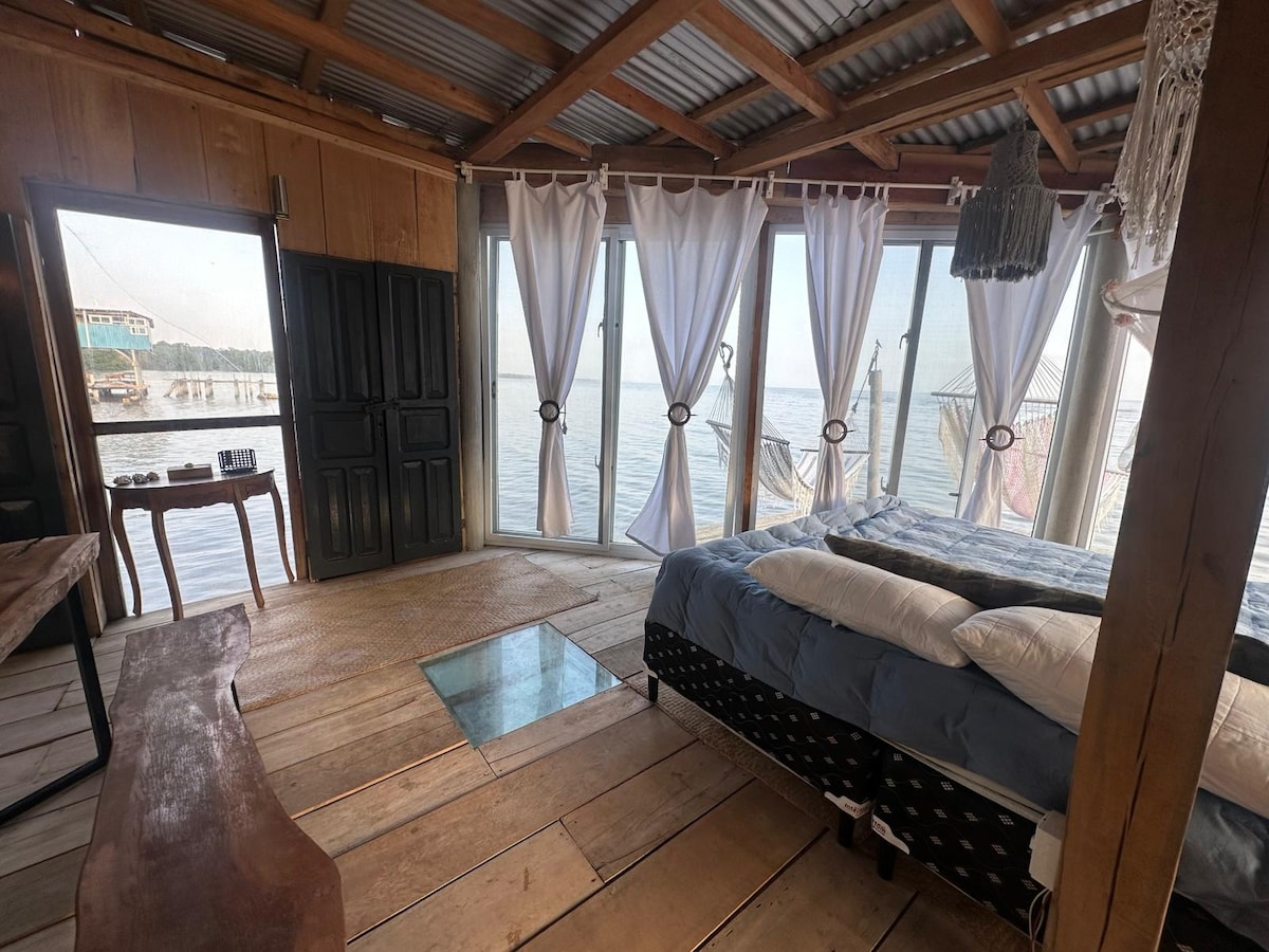 Willkommen in der Lodge 1000 Posibilidates nahe Playa Blanca.What awaits you is a wonderful experience in a house built right in the middle of the sea. You can hear the water lapping beneath the house and enjoy a truly unique experience of nature. The house has lots of windows, so you’ll be able to enjoy spectacular sunrises and sunsets. The moon and stars look absolutely stunning when viewed from the hammock.