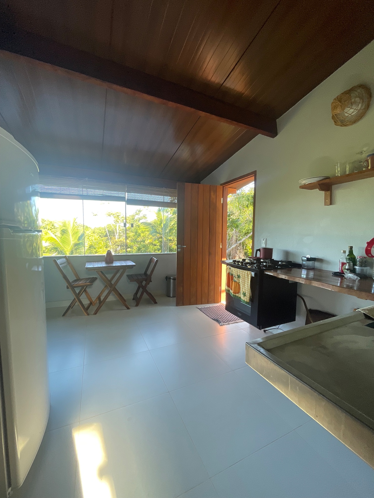 Chalé Caju is a bungalow located between the Atlantic forest and the edge of the stunning Serra Grande beach. The accommodation consists of three more bungalows and a spacious common room with a full kitchen, hammocks, sofas and a large garden with coconut trees. From here you have a special view of the sea and the sunrise. It is our closest chalet to the beach. To make your stay even more comfortable, you can order breakfast during your stay for an additional fee.