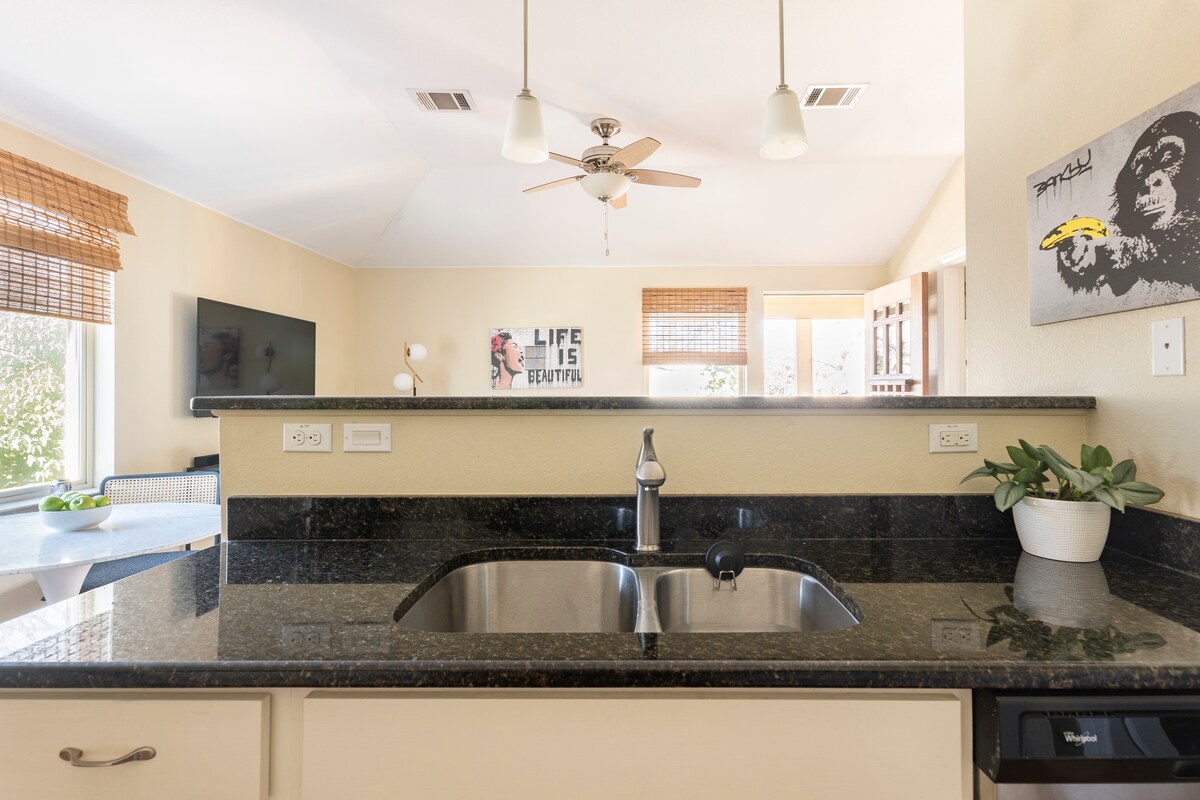 From start to finish our space is a delight! Inside a treasure of bespoke woodwork and thoughtful design creates a stunning 'traditional meets modern' space you will enjoy for its beauty and flow. It offers handpainted shiplap ceilings, real antique cedar/stone walls, custom cabinetry, dimmable lights, full kitchen, easy access outlets and a private entrance from the side courtyard, a lovely place to sit and enjoy our incredible edible yard with berries, figs, fruit, herbs, &veggies growing.