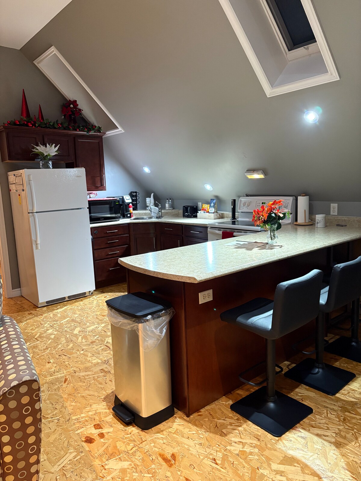 Our loft is spacious & perfect for a romantic retreat, vacation or work trip. This unique loft has all the amenities for your convenience, a Jacuzzi bathtub for your relaxation and an electric fireplace. Kitchen includes fridge, stove, dishwasher, microwave, & lots of dishes if you decide to cook. The loft is located above our garage and private. There is a new sofa bed for additional guests. We are conveniently located close to the TCH & only 10 minutes from the Casino. See you soon!