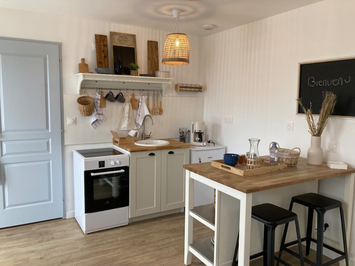 Kick back and relax in this calm, stylish space. The Soleil d'Artist apartment is ready to welcome you, a small cocoon close to the beaches of Erdeven and the Etel bar. You can walk there. As a painter, I wanted to give it an artistic touch adjoining my studio, with a garden where you can have seasonal fruits and vegetables, dining areas for a plancha and rest areas, bicycles. A quality apartment that will seduce you with its charm.