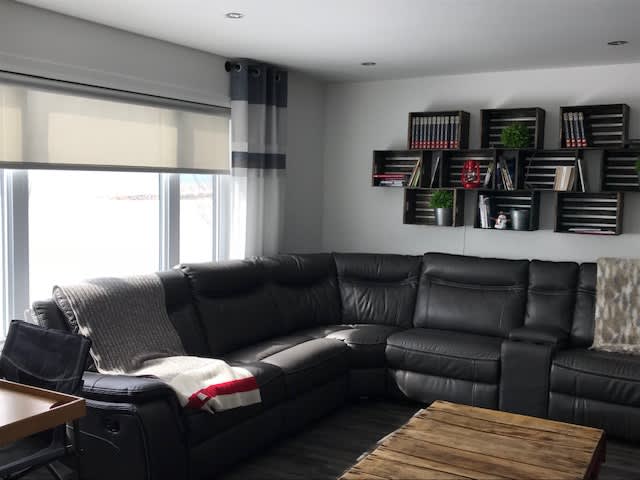 Small Scandinavian chalet for two people ideally located to enjoy the attractions of Charlevoix. It has a thermal circuit (hot tub, sauna, hammam) Very intimate and in the middle of the woods, the view overlooks the majestic river and the mountains in the distance. All the modern equipment is there and the comfort is absolute A/C and outdoor fireplace. The open concept design was designed for an immersive experience in nature: large windows, panoramic shower. Access via a private road at 500 m.