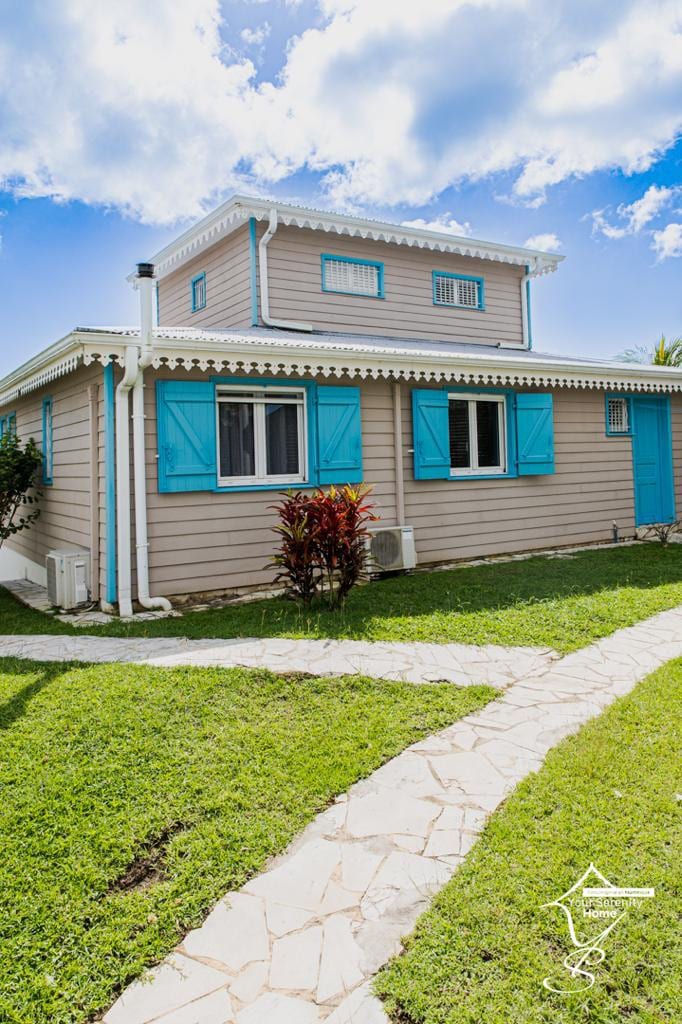 Welcome to our bungalow nestled in a peaceful and green setting, located 5 minutes from the airport and 10 minutes from the beautiful beaches. This cocoon includes an air-conditioned bedroom, bathroom, separate toilet and equipped kitchen. Relax by your pool with a floating tray, deckchairs, and a dining area. Located in the center to explore the north and south of the island, our bungalow is the perfect base for your tropical adventures.