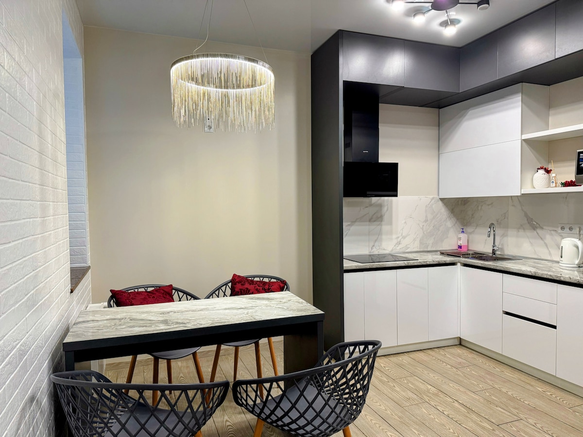 Enjoy the stylish atmosphere of this apartment, which is located in a quiet part of the city, namely near the lake, opposite the Shchaslyvyi district. The apartment is in a new, modern, comfortable house in Rivne. The apartment is equipped with everything for your comfort and relaxation. Nearby shops, transport