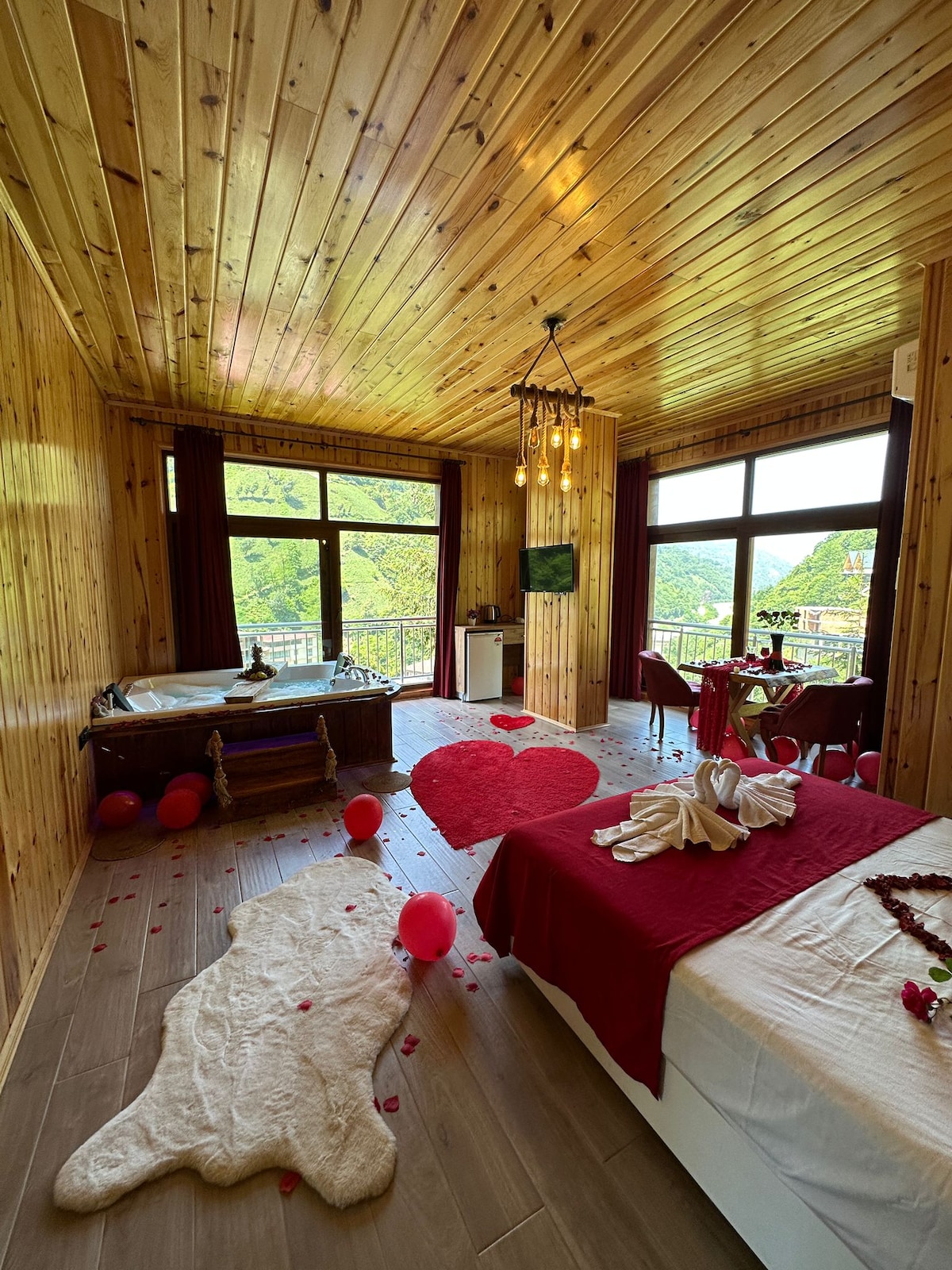 Valent Suite Bungalow offers an accommodation experience in touch with nature in the Ardeşen district of Rize, near the Fırtına Stream. The facility attracts attention with its duplex houses with jacuzzi and fireplace River View: All rooms have a view of the Fırtına Stream Breakfast Service: Breakfast is served to the rooms with a mixed service tray Activities: Various activities such as zipline, rafting and historical bridge visits can be done in the immediate vicinity.