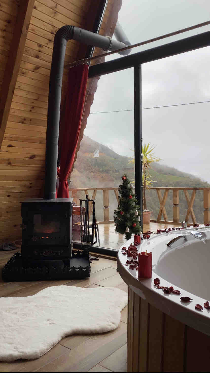 -Bungalov evimiz tamamen ahşap ve otantik olarak tasarlanmıştır. -Bungalov evimiz şömineli olup muhteşem vadi ve dağ manzarasına sahiptir. -Odamız 45 m2 genişliğine sahiptir. -Balayı çiftlerinin rahatlıkla tercih edebileceği bir konsepttedir. -Alt kat yaşam alanı şeklinde olup; balkonu, oturma grubu, banyo, tv, minibar vs üst katta ise bir double (iki Kişilik) yatak bulunmaktadır