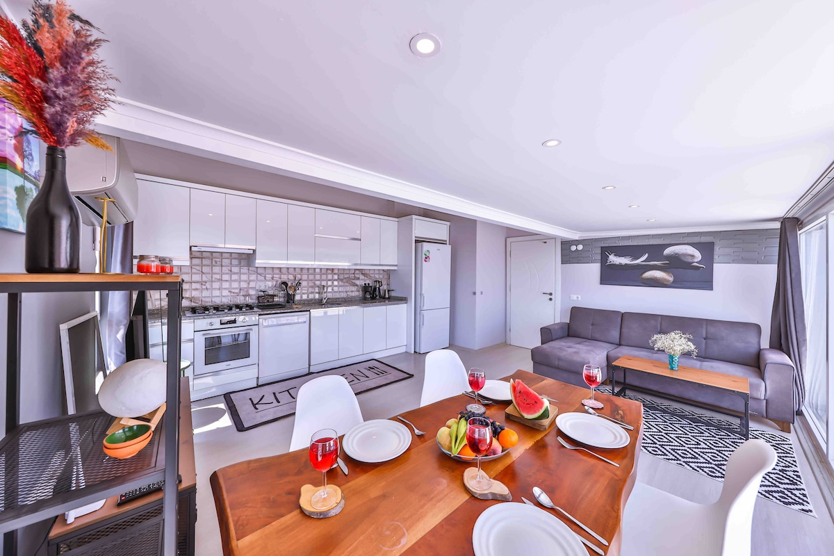 PANORAMA KAŞ APART HOTEL, with a unique sea view and a central location in KAŞ, the pearl of the Mediterranean, is designed to offer comfort, pleasure and peace to its guests. PANORAMA KAŞ APART HOTEL is a new facility that was completed in May 2019. All our apartments are 2+1 apartments, with 1 master bedroom, 1 children's bedroom, open kitchen, living room and bathroom. It has its own parking lot.
