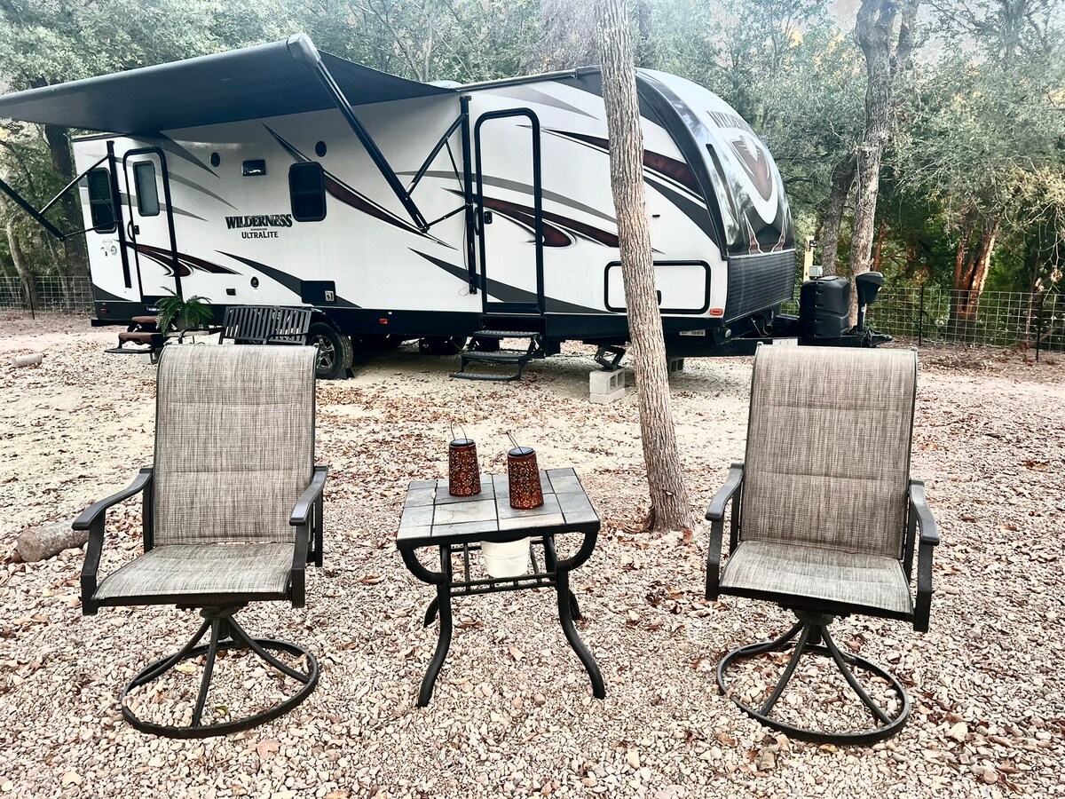 The like new RV is situated at the back of our country property. If you’re seeking a peaceful escape from the hustle and bustle of town, this RV is the perfect spot for you! Just under 2 miles away, you’ll find the beautiful Lake Bryan, ideal for canoeing or paddling at sunrise. And don’t forget to catch the stunning sunset at Cadillac Ranch by the lake in the evening! 15 (mostly highway) mins from Kyle field and 8 mins from Downtown Bryan. Extended stays available - just ask!