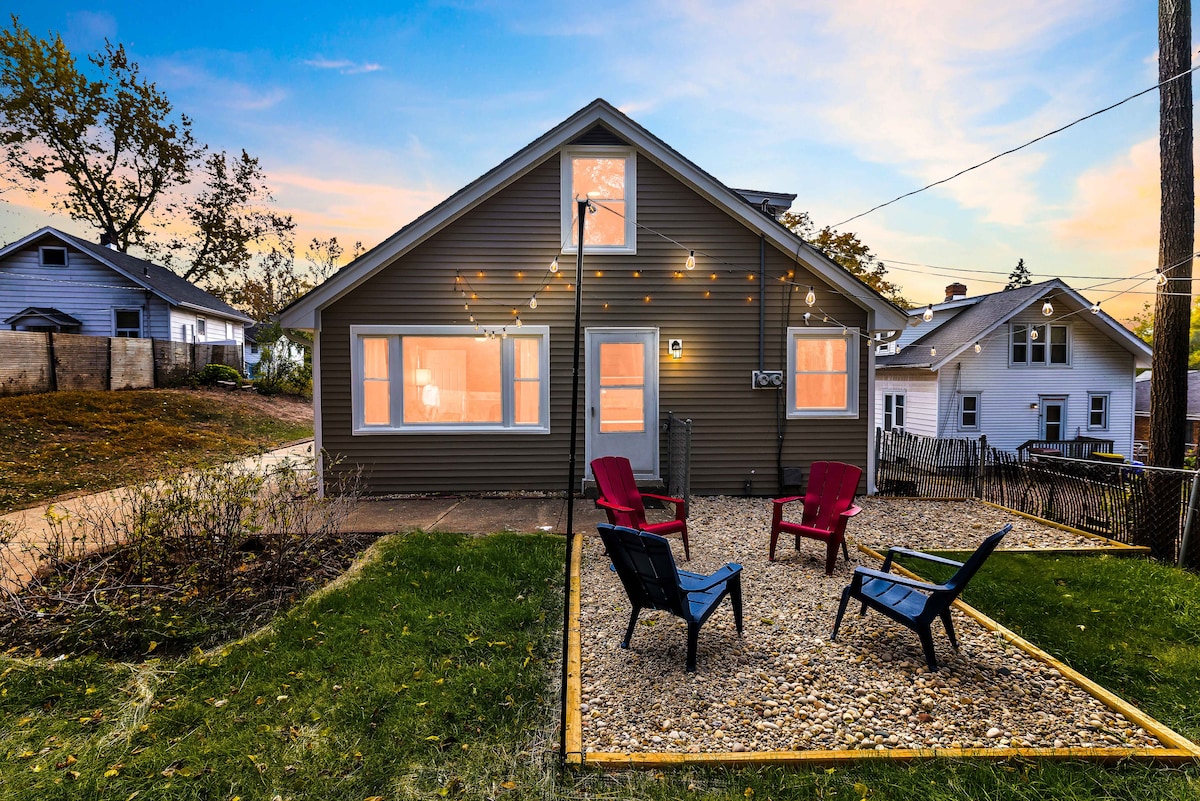 Renovated 2BR home (plus loft with office), thoughtfully decorated for hassle-free travel for families, couples, groups, and business travelers. • AMENITIES: Fully equipped kitchen & coffee bar, FREE driveway parking, in-unit laundry, Smart TV, and fast WiFi. • LOCATION: Just minutes from hospitals, downtown, Casino, Anderson Japanese Gardens, Rockford Art Museum, Discovery Center etc. Need More Space? We have an adjacent unit available to sleep up to 12 total guests! Book your best stay now!