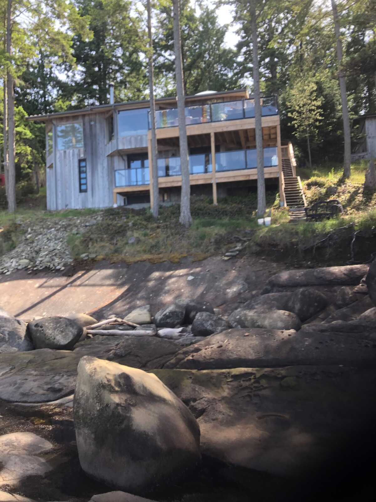 Situated on a sandstone beach, you’ll be lulled by the lapping waves and entertained by barking seals, soaring eagles and possibly some passing orcas. With stunning sunrises to wake you and golden light to end your day, you can then gaze at the twinkling Vancouver skyline as you relax fireside, on your own private deck. Our guest suite is yours to enjoy! Mayne Island awaits you with its hiking trails, e-bike rentals, kayaking and more. Breakfast brought to your door!!