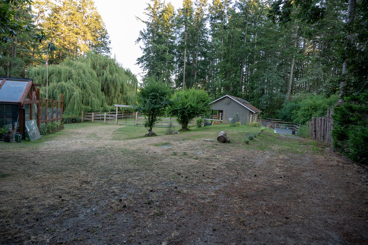 Discover our charming and unique airbnb, nestled on a lush 1-acre property. With a serene 1/4-acre pond, graceful herons, majestic eagles, playful dragonflies & musical tree frogs, it's the perfect retreat. Friendly miniature ponies make it an ideal destination for animal lovers. With scenic hiking trails, nearby ocean beaches, & a pet-friendly atmosphere, our airbnb has something for everyone. Book your stay now and experience the peace & tranquility of this one-of-a-kind place.