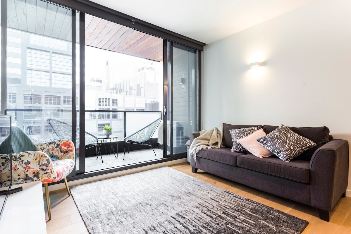 Central, quiet & modern home Beds Bedroom-King Loungeroom-sofabed A stone’s throw to South Melbourne market, a huge range of shops & restaurants, St Vincent Gardens, Albert Park lake & a short walk or tram ride to the City & St Kilda - 24 hr keyless check-in - fast free internet - heritage façade - very high ceilings - light-filled loungeroom - polished concrete - walk in robe - stylish en-suite - north-facing sun deck - sensational city views - RC/aircon - triple glazing on lounge windows