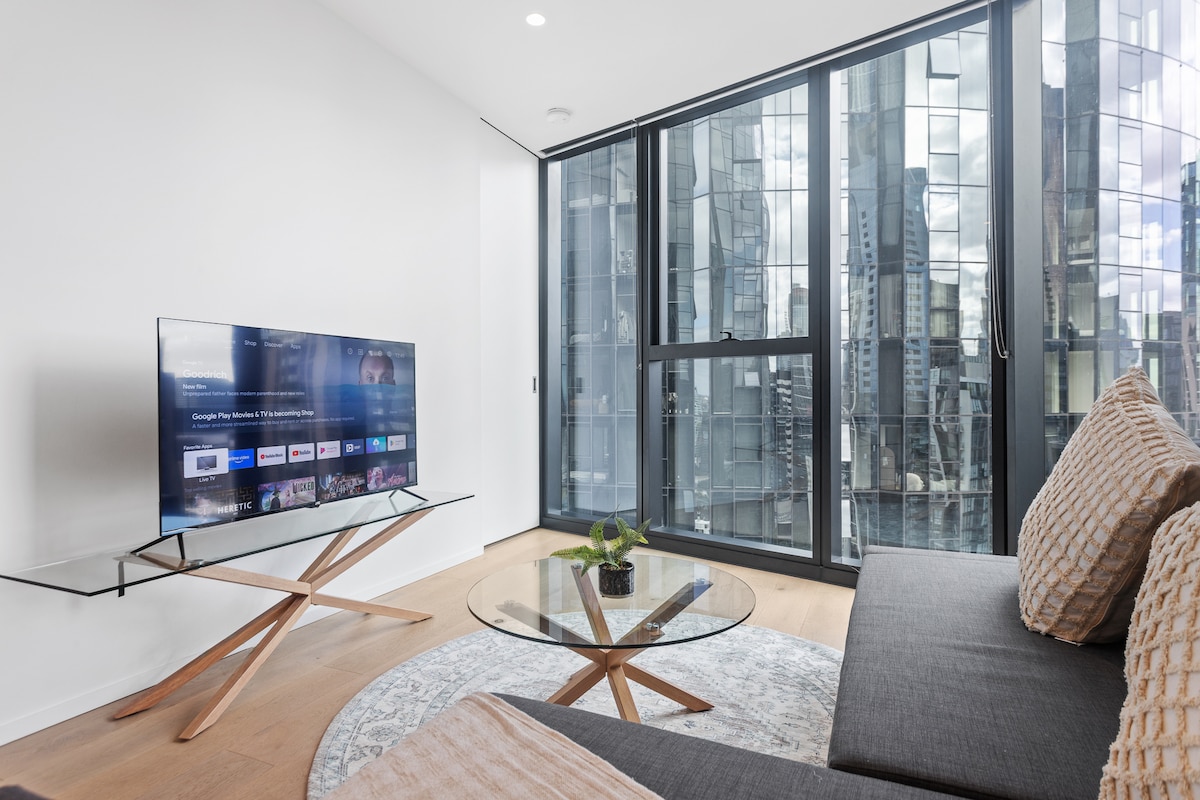 Consistently rated one of Melbourne's finest for nearly a decade. Our 10th-floor, 2-bed/2-bath South Yarra apartment features high ceilings and premium finishes throughout—details that make Airbnb special. We host Australian Open pros, business people, academics, families & pets from around the world. Free parking (on-site), keyless check-in, pool, spa, sauna and BBQ terrace. Crib available. Relax with 4K Apple TV, Sonos and 100MB/s WiFi. Steps from Chapel St—Melbourne's best dining precinct.