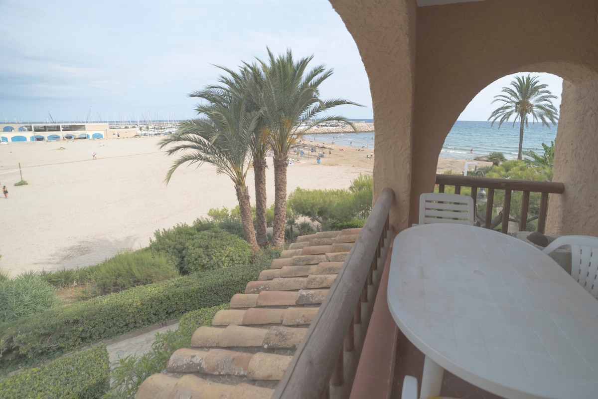 Cute ocean-front apartment with 1 double and 2 single bedrooms, which can be converted into doubles by extending the beds, so the apartment can host up to six people. There's also a portable baby travel bed if you are travelling with a baby or a toddler. All bedrooms are facing the interior so they are very quiet. For a relaxed beach holiday, the location doesn’t get any better than this. You step out of the house and the beach is literally right there.