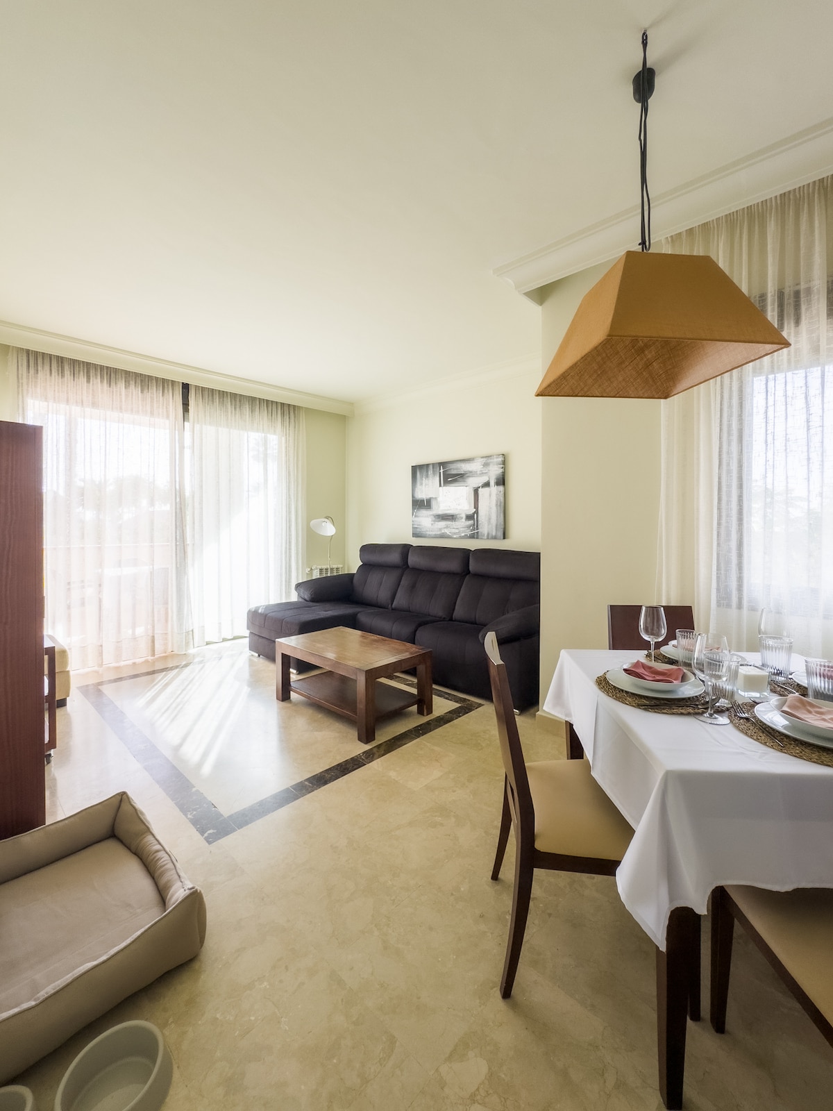 Acogedor apartamento en urbanización de lujo. El apartamento cuenta con todas las comodidades para hacer tu estancia perfecta, terraza para disfrutar tus noches de verano y piscina. Está en una excelente ubicacion a solo 1,5 km del supermercado, 2,8km de la playa y 7,8 km del centro comercial. Ambiente tranquilo y acogedor. La urbanización cuenta con seguridad privada. Dentro del Resort podrás acceder al campo de Golf, parques infantiles, Gimnasio y un excelente restaurante.
