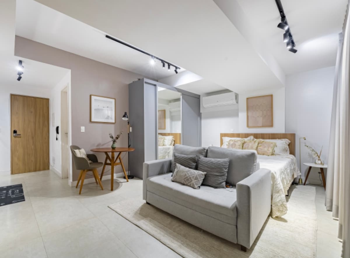 Read the 4 house rules in the "Things to know" and "Show more" sections. Highlights include: - Daily cleaning of the apartment included - Newly renovated apartment with brand new furniture - Building infrastructure with swimming pool, sauna, restaurant and fitness center - 24/7 front desk - Password lock - State-of-the-art SmartTV in the living room - High-speed Wi-Fi - Accommodates up to 3 people, 1 on the sofa (suggested for children) - Full kitchen - Next to Leblon and Rio Design malls - 5-minute walk to the beach