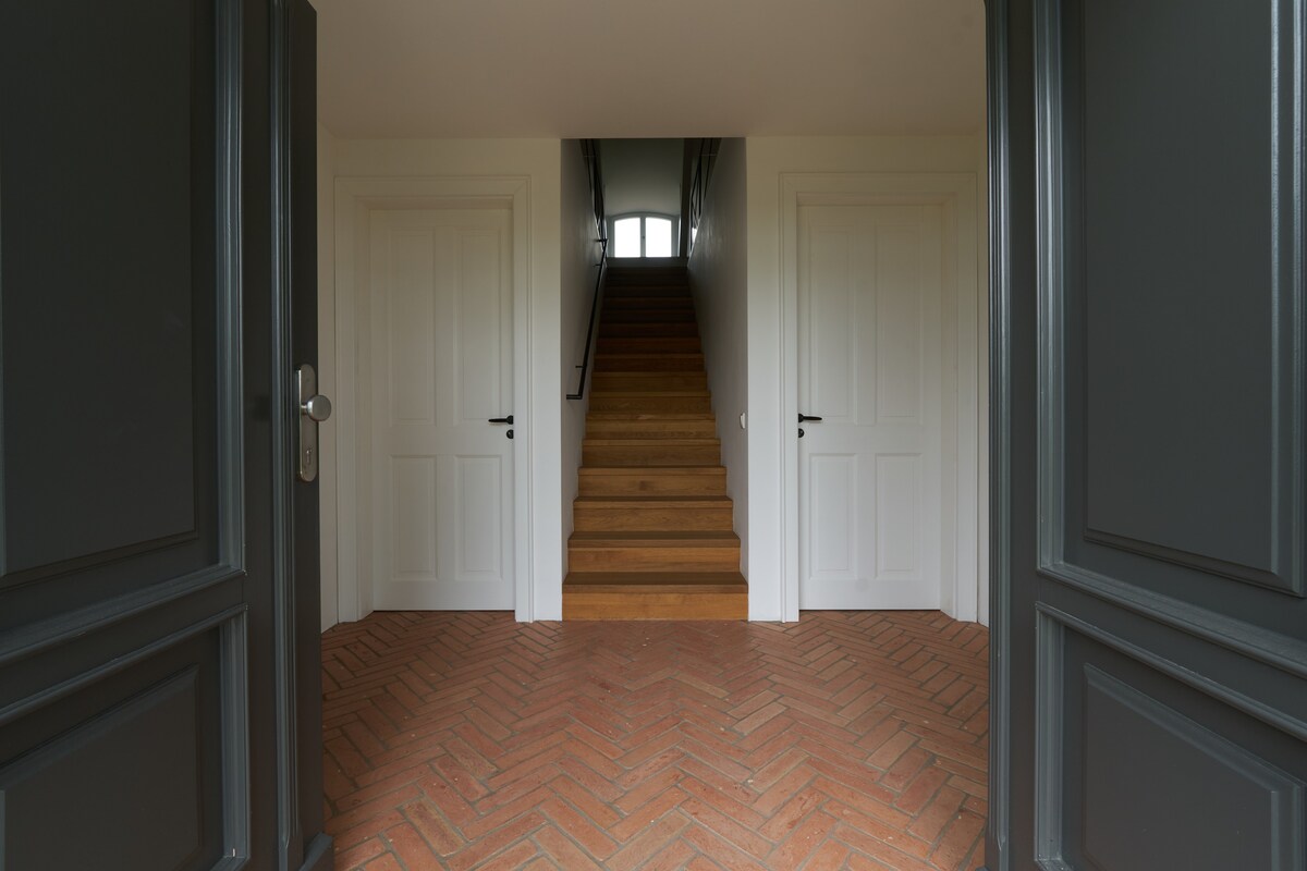 Enjoy the tranquility and security of these ancient walls. Surrounded by ancient trees in the Mecklenburg Lake District. Your apartment is on the 2nd floor and was carefully renovated. We rebuilt the old clay frameworks, uncovered the ancient floorboards and only the finest clay paint was used on the walls. The hideaway is rounded off by a small cast iron fireplace for the evenings and a private sauna on the edge of the field... We love children 🧡🌟 4 cats and 1 dog live on the farm ;-)