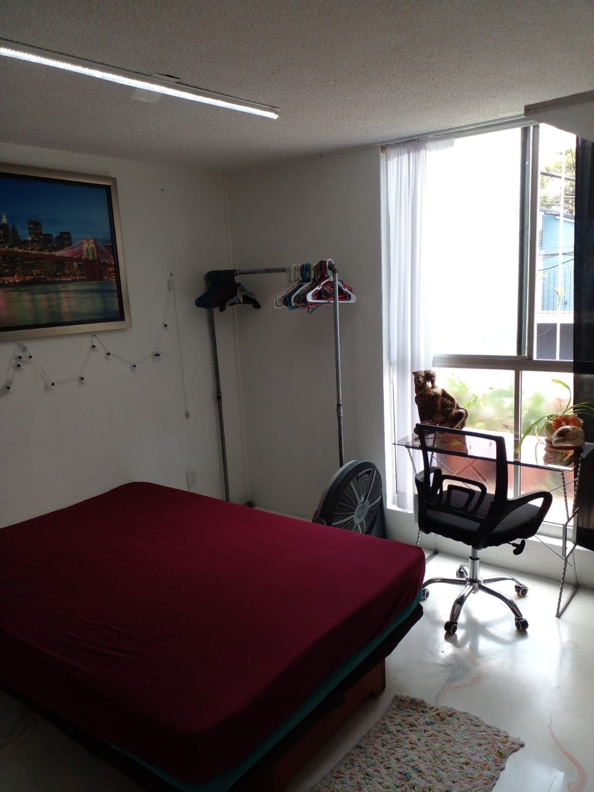 Functional space for two people. It has a double bed, its own bathroom. Cooking with all the basics The location near Polanco and the reduced price is the plus of our accommodation together with the attention that we can provide you permanently. It's a good neighborhood, there's security in the area. We do not have parking. We are 2 km from Polanco and 1.5 km from Antara-Miyana-Carso. 600 m from the Rio San Joaquin metro station.