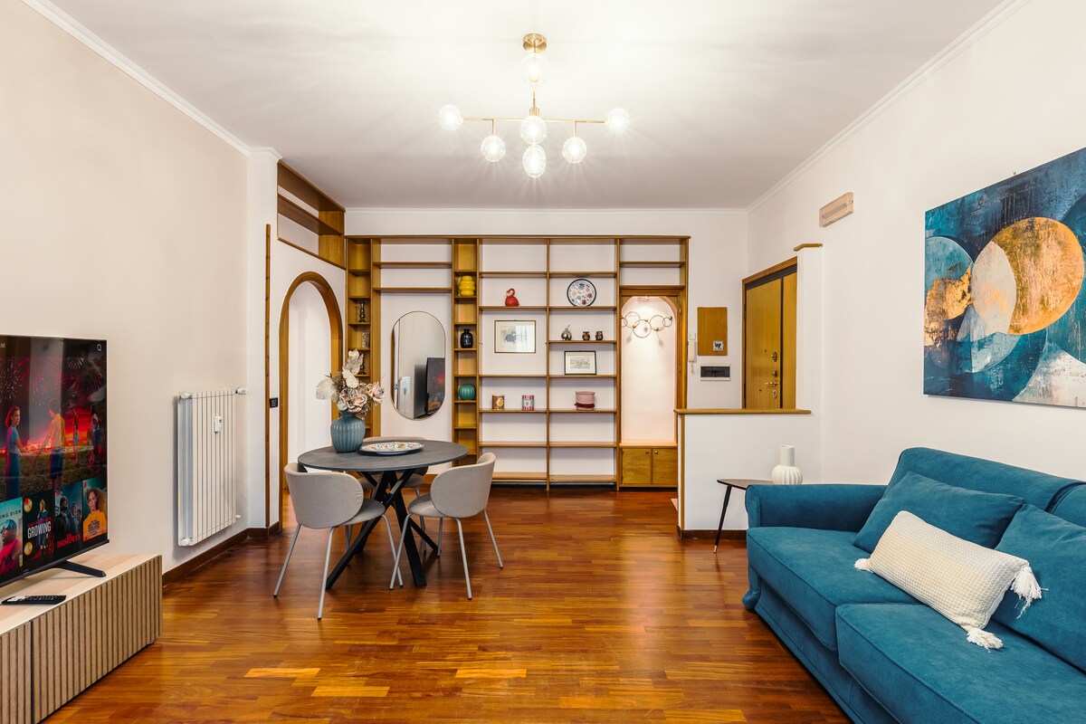 Lovely apartment in Piazza San Giovanni, in the center of Rome, it is possible to reach in 10/15 minutes historical places and monuments such as the Colosseum, Fori Imperiali, Piazza Venezia.The house is located on the second floor of an elegant and modern building, the house is composed of living room with kitchen area, sofa bed, bedroom, bathroom with large shower and a beautiful terrace.The environment is characterized by elegance, attention to detail and modern / vintage functional style.