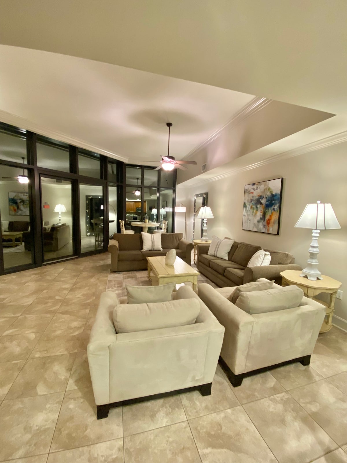 This large Gulf front 3 bedroom and 4 bath beachfront condo is one of the newest condos in Orange Beach. This unit is located on the 18th floor with floor to ceiling windows allowing incredible views of the gulf. Kitchen has all stainless steel appliances and granite countertops. Living room seats 10 people comfortably and the condo contains 4 flat screen TVs. Our digital check-in and smart lock means you don't have to check in or wait in lines as soon as you arrive you can get into your room.