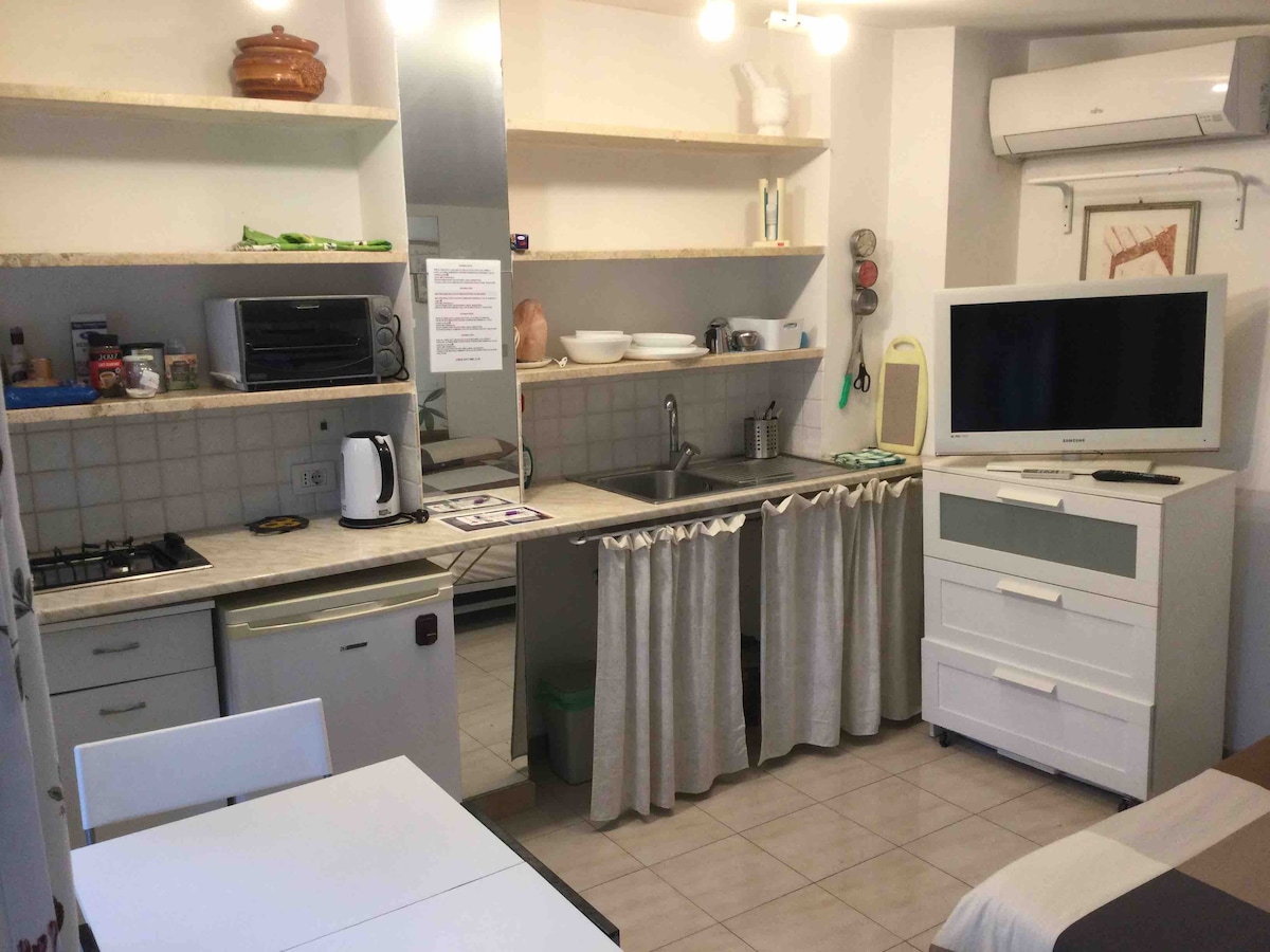 Banana Guest House is a studio apartment, fully equipped, independent and located in a private garden. It is located in Centocelle a quiet neighborhood in the Southeast Rome, crossed by the ancient Roman acqueduct Alessandrino known because full of restaurant, brewpub and winebar. It is close to the MIRTI Metro C stop (100 mt). The city center is easily reachable by public transports (METRO C/A).