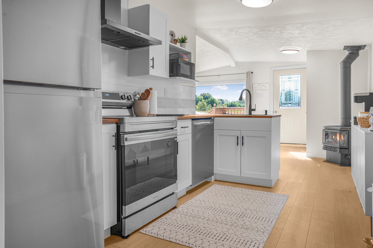 A personal retreat or a romantic getaway awaits you! The barn/studio open concept is adorably decorated with antique finds and modern amenities. During the day explore the countryside and discover farmers’ markets and unique shops and bakeries just a short drive away. Or just stay in and relax in the private outdoor barrel sauna followed by a spa-like shower with the 16" rainhead. Peaceful evenings will have you relaxing by the campfire with unforgettable sunsets and beautiful star filled skies.