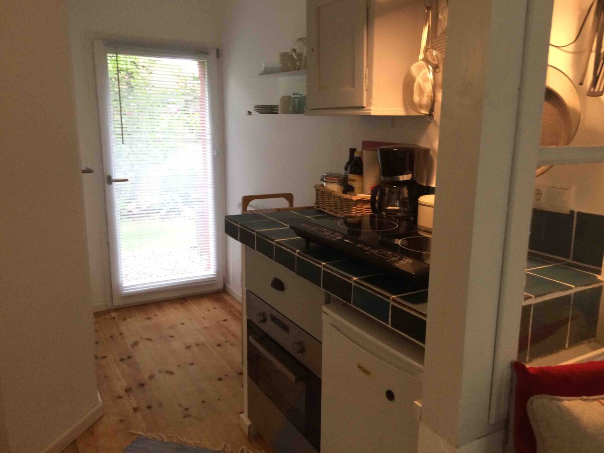 In the closed area of our house. Pleasant atmosphere through clay plaster + wood; beautiful surroundings, very quiet. and close: Ratzeburg (car 5 min), Lübeck (car 20 min). One bathroom; only ONE fast induction hotplate, simple cooking, fridge, Wi-Fi. Double bed (160 × 200). Additional table + chairs in the garden. Free bikes. Bus on B207 junction Buchholz. Very fast to the lake, boating. No animals, no smoking. Limited telephony in the house due to clay plaster depending on the provider.