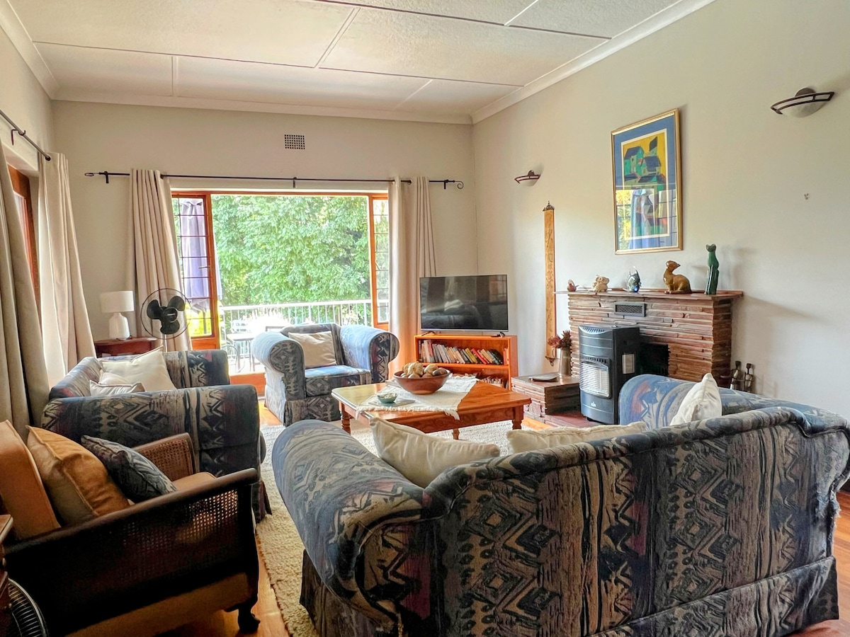 Solar powered battery inverter to escape load-shedding and forget your worries in this spacious, peaceful and centrally located place. A stone's throw from the best restaurants, shopping centres, sports facilities, and hospitals. Let the children play in the jungle gym and lush garden. Relax in the sauna and take a dip in a pool to cool down. Exercise at the gym and play pool. We look forward to welcoming you to our perfectly hidden getaway in the middle of bustling city landscapes.