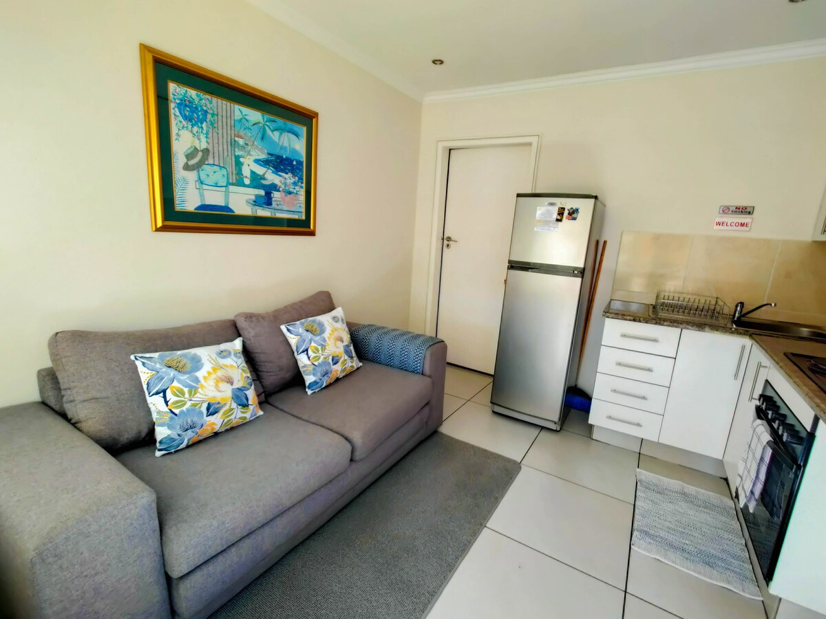 Fully furnished modern, self catering secure and fully equipped private studio apartment, with solar power, so you will not be affected by power outages! Situated in a quiet safe neighborhood, close to all major shopping malls and entertainment areas. The space is safe, calm and stylish, newly renovated and perfect for business persons or travelling couples. Please note that this apartment is strictly no smoking. There are very friendly dogs on the property which love to greet guests on arrival.