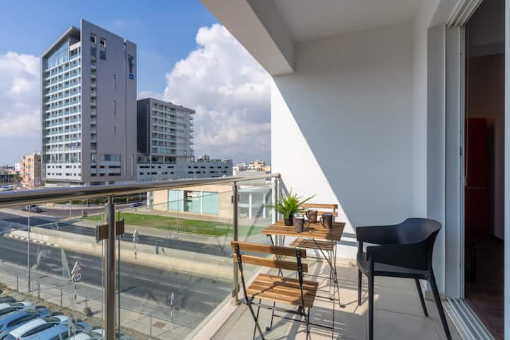 Tucked away on the third floor of a quiet building on Ammochostou Street, Harbor 304 is your serene escape in the heart of Larnaca. Just a 15-minute walk from the buzz of Finikoudes Promenade and the coastline beyond, this 1-bedroom apartment blends comfort, simplicity, and Mediterranean charm — making it a cozy home base whether you're here for a short city break or a longer stay.