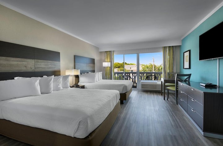 Our Jamaican Ocean View Rooms feature two queen beds, one bathroom, a private side ocean view balcony facing north, an iron and ironing board, an in-room safe and a small refrigerator. The Jamaican units are located one block north of the Cayman Tower and main resort. Guests that stay in the Jamaican have access to a private pool and deck at the Jamaican, as well as full access to all of the amenities located at the main resort. These units sleep four people comfortably.