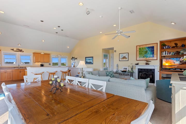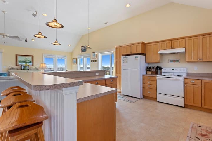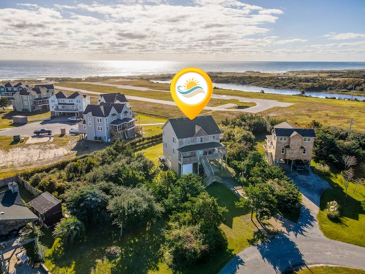 If you've always wanted to get away from the busiest areas of the Outer Banks but still be within easy driving distance of local restaurants, gift shops, and landmarks, Hatteras is the perfect place for you to take your next vacation! Just a few miles down the road, you can go birdwatching and explore the marshes of the Pea Island National Wildlife Refuge or drive to Buxton to climb the famous Cape Hatteras Lighthouse. The anglers in your group will love being so close to Cape Point where they can try their luck reeling in a big catch. To learn more about the area's exciting history, stop by the Chicamacomico Life-Saving Station to learn about how water rescues were carried out long before modern technology. For a quick bite or tasty breakfast, drive down to the Orange Blossom Cafe for an apple ugly that's definitely worth writing home about. For dinner, try a delicious seafood meal from Pangea Tavern or a burger from Bros. There are also dozens of local shops within easy driving distance and all the fun adventures to be had in Hatteras Landing just down the road, so there is always something fun to do for the whole family.