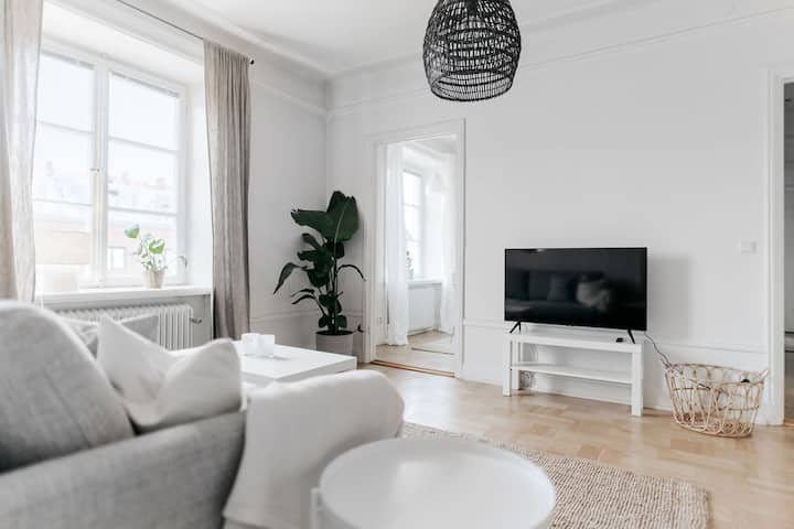 Welcome to our top-floor urban retreat in Stockholm! This 70 m² apartment apartment comfortably accommodates up to 6 guests. With two spacious king-sized bedrooms and a sofa bed in the living room, there's plenty of space for everyone. The modern kitchen is fully equipped for your convenience, and the bathroom offers all the essentials.