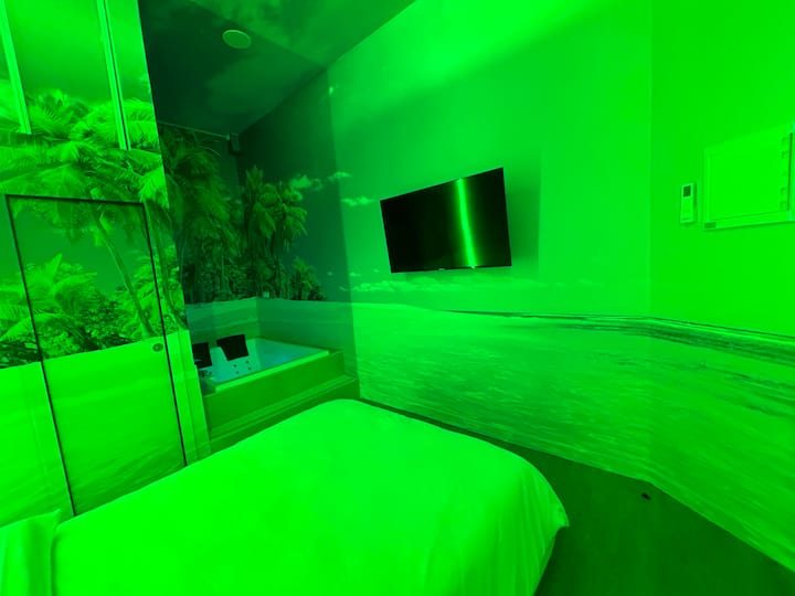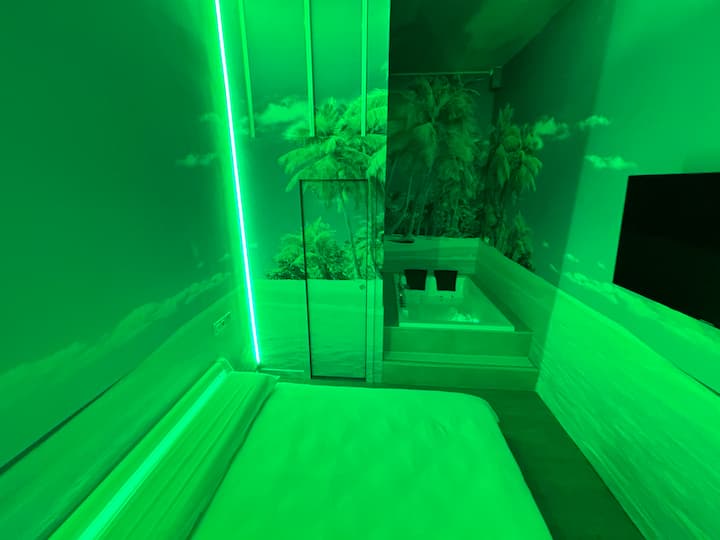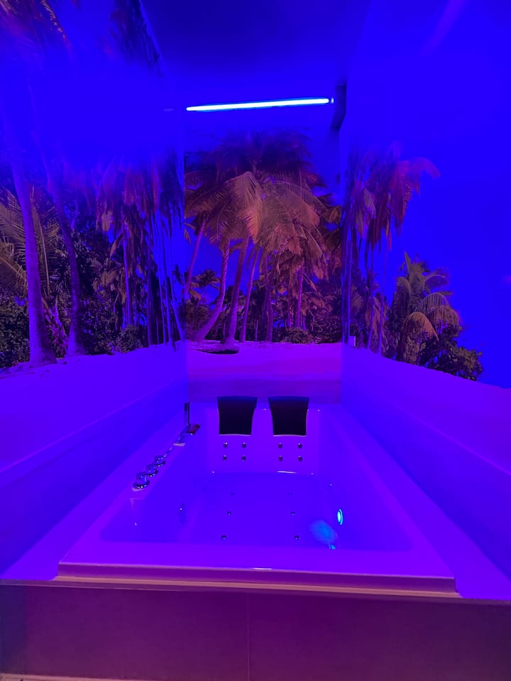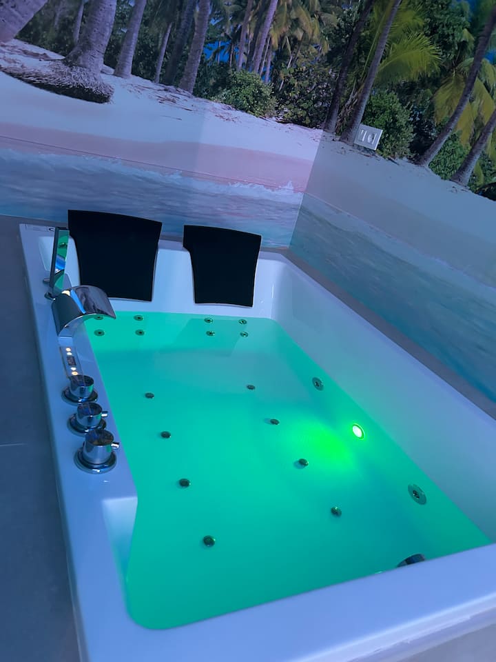 Room with a jacuzzi and a private bathroom